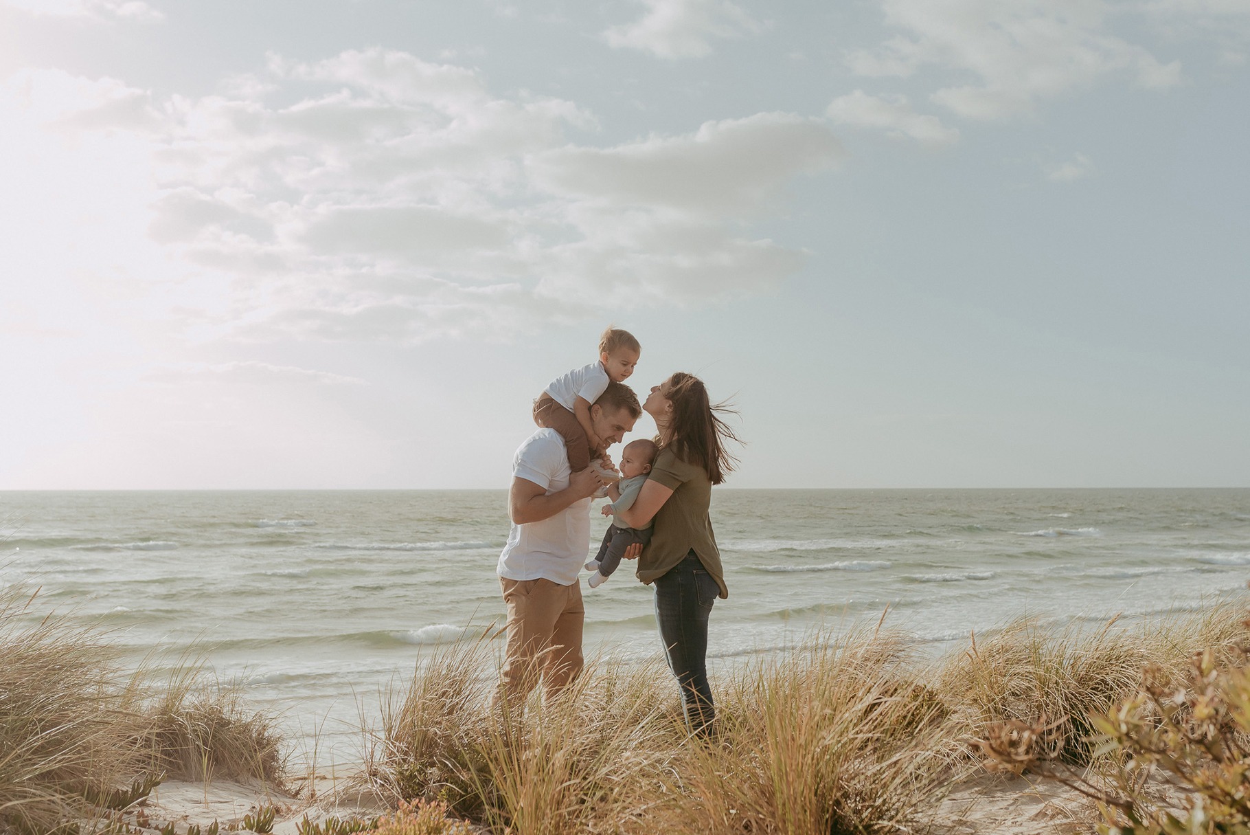 A family expecting twin babies having their maternity photography on the beach in Bayside. Before your session, we can have a phone chat to run through what to expect for your mate
