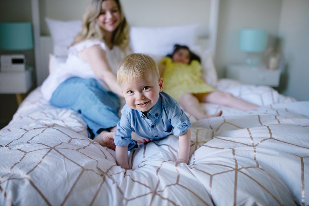 Melbourne lifestyle family photography with D and her children in her home. Family fun capturing a new chapter as three for this beautiful family with two cheeky kids in photograph