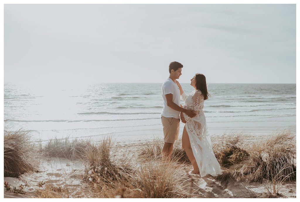 A beautiful gift, a pregnancy portrait done at the beach in Bayside. An beautiful overcast day on a sunset evening, to capture the pregnancy of their first child, a baby boy.