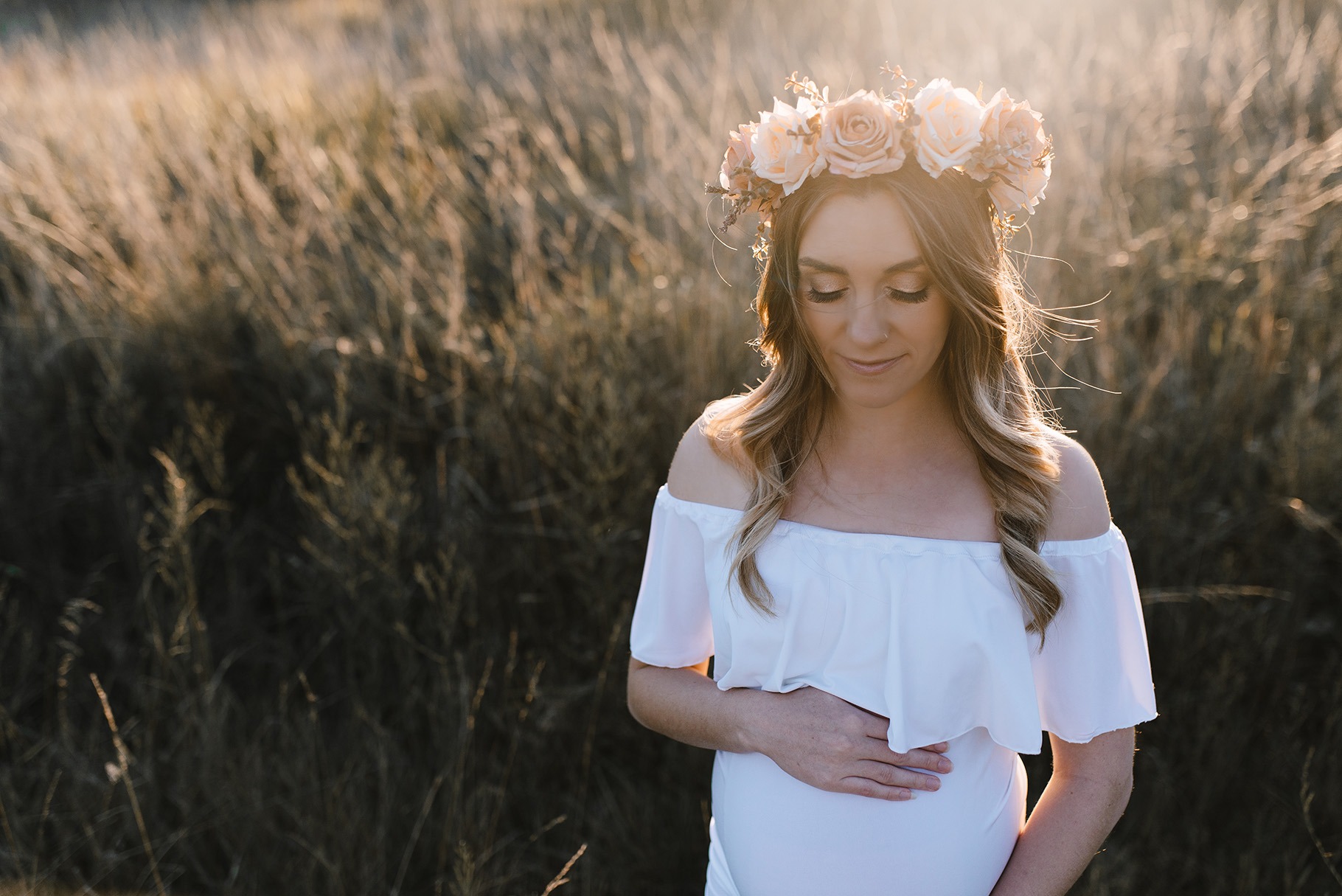 Lifestyle maternity photography capturing beautiful parents to be with their growing love over a glowing summer sunset evening.