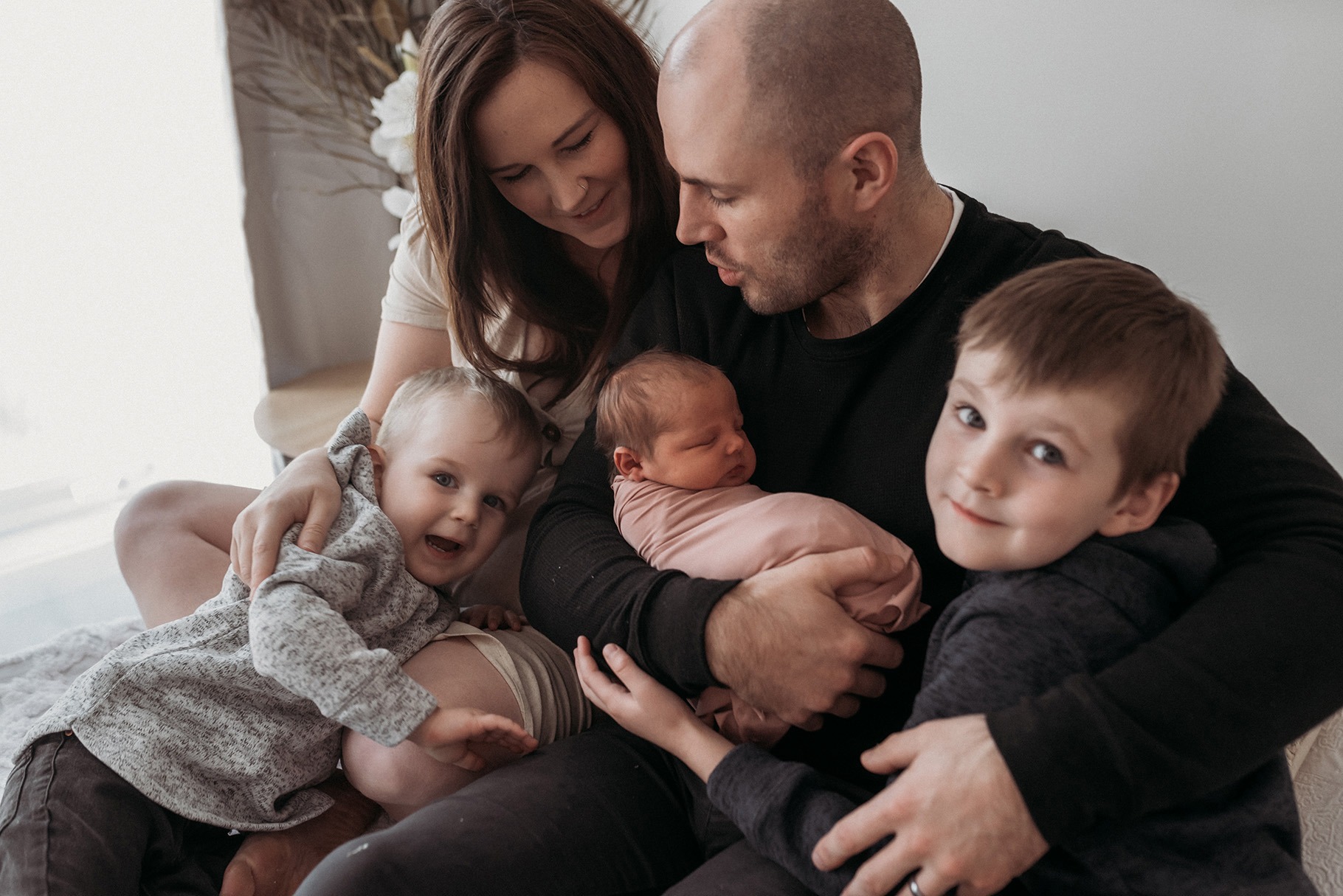 Two boys, one girl to complete K & T's family of FIVE. Family newborn session in the studio with these guys, full of fun, tears, bribes and LOVE.