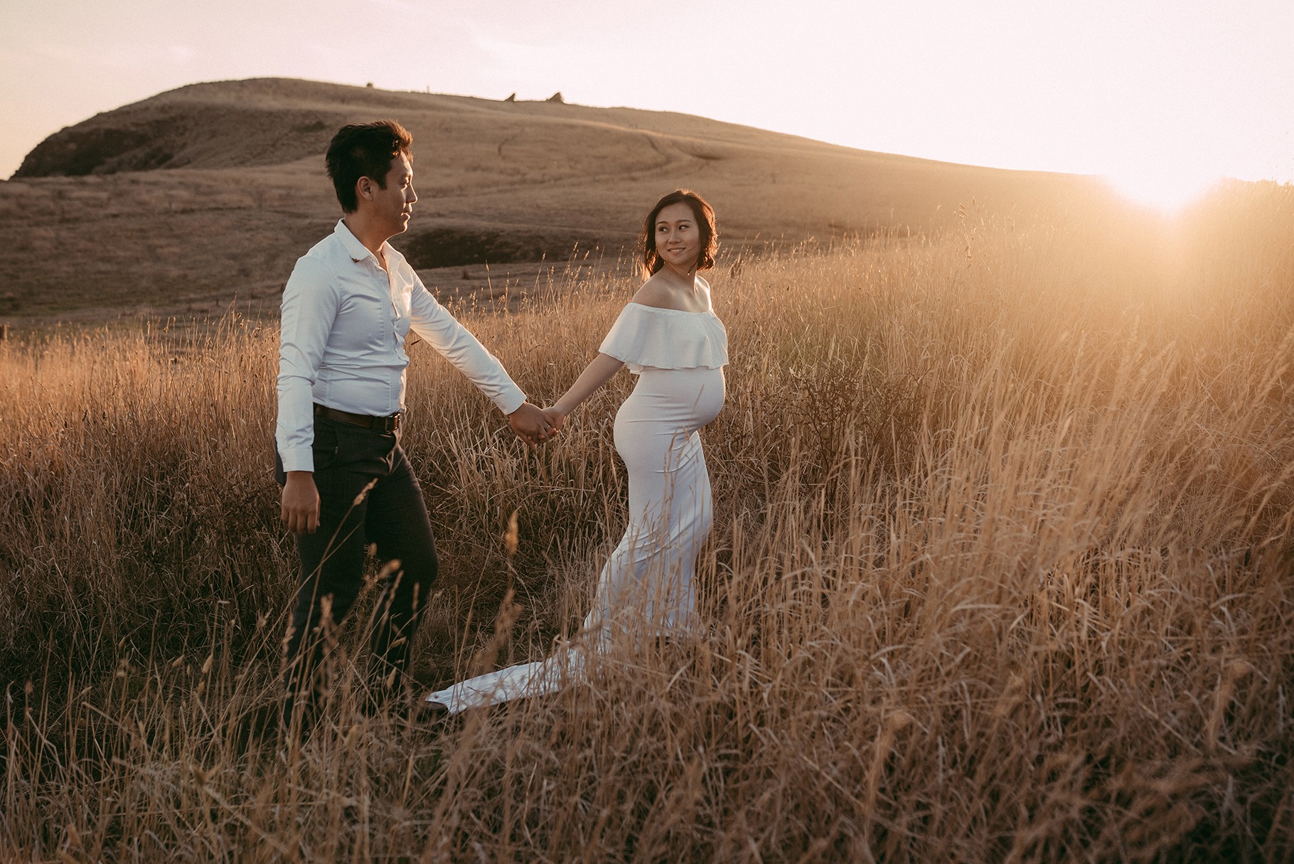 Coming all the way from Hong Kong to capture a beautiful sunset maternity session, with the beautiful scenery of the Mornington Peninsula. A pregnancy portrait session to capture y